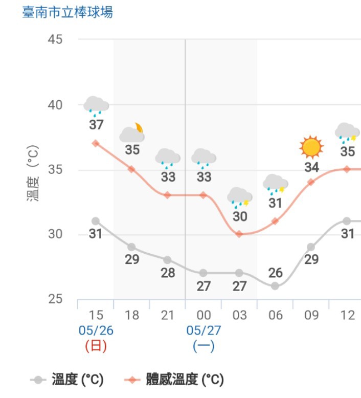 推 MrAIR: 球場天氣預報下午是放晴 05/26 09:49