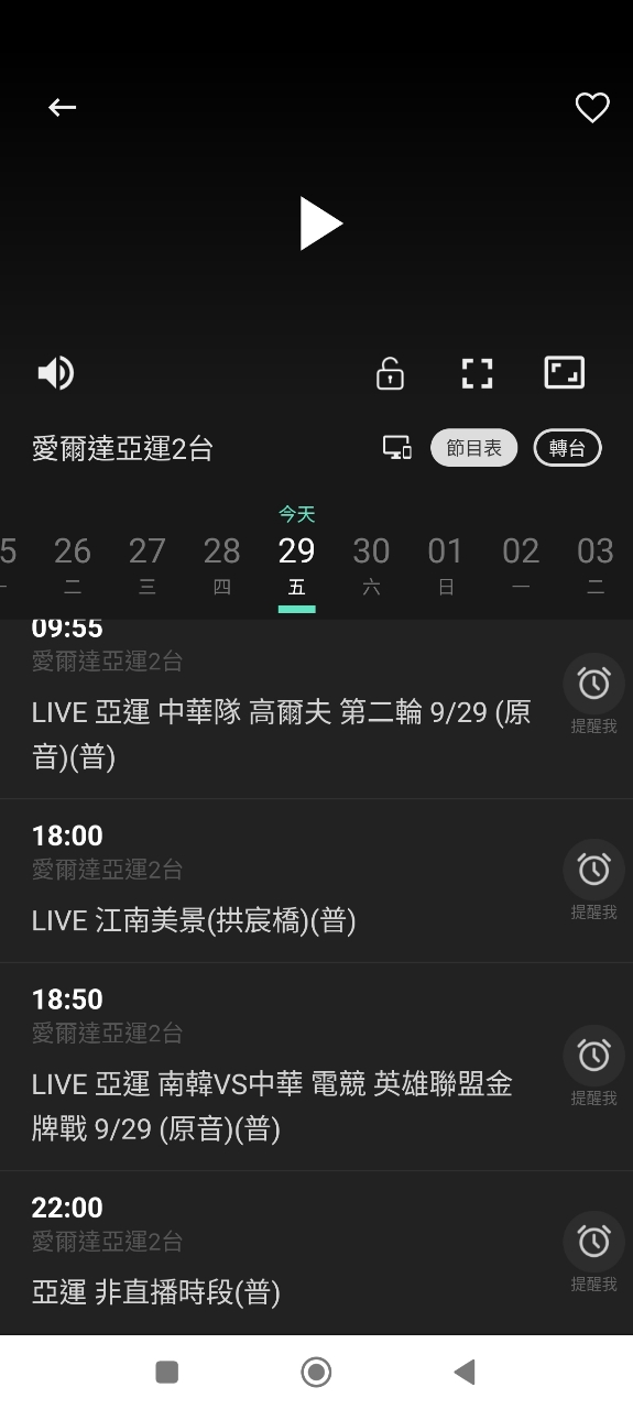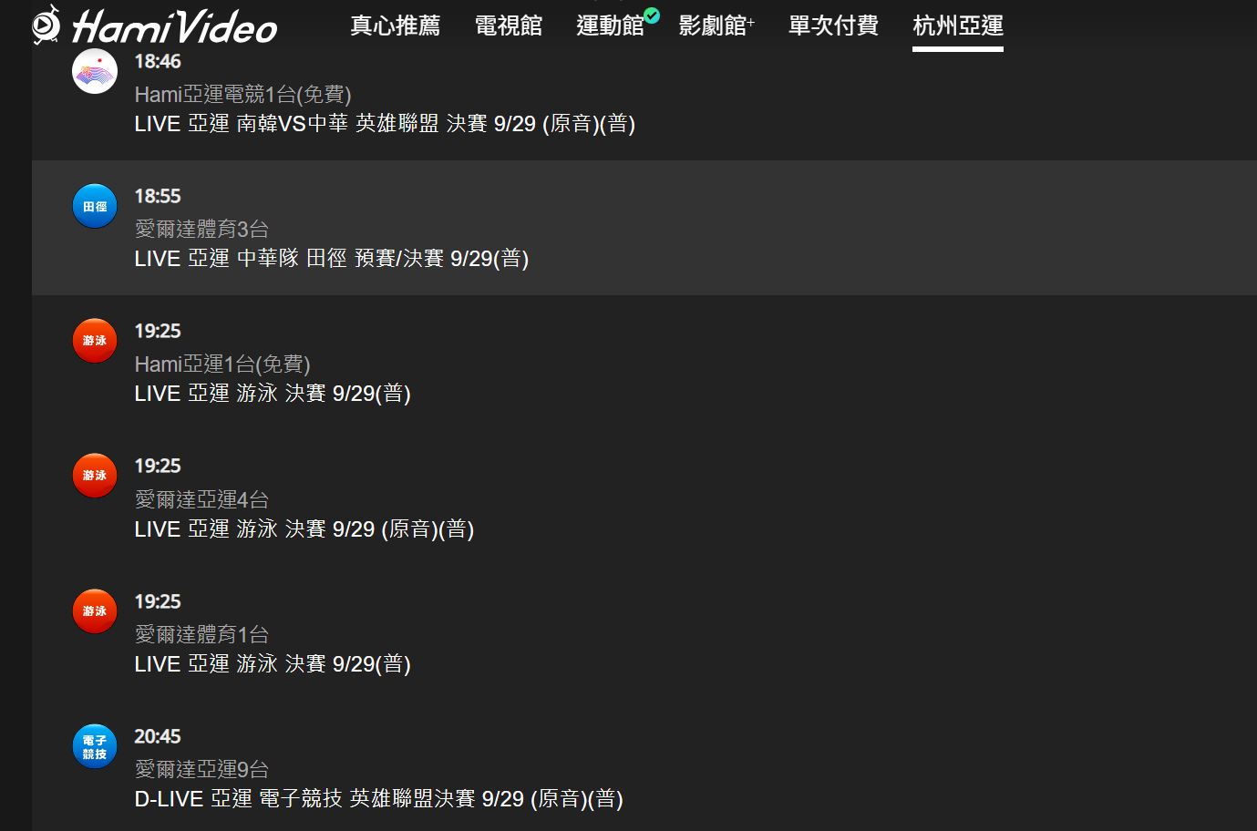 推 GenjiEd : 好像在愛爾達亞運九台 和 體育二台dlive 09/28 23:25