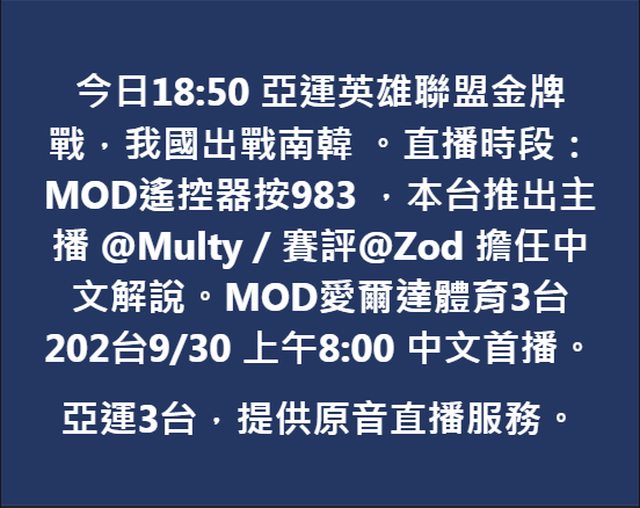 → YuiiAnitima : 亞運三台原音 體育三台D-LIVE 09/29 01:57