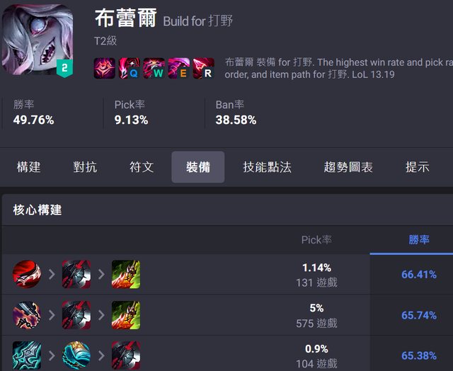 LOL Alytics這些數據都有 因此我現在要深入研究某一個角色的出裝都會去參考LOL Alytic
