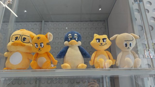 玻璃櫃裡展示選手代表動物週邊
