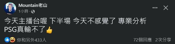 推 jay920314 : 一刻都沒有為CFO落敗哀悼 立刻趕到戰場的是PSG 10/15 14:24