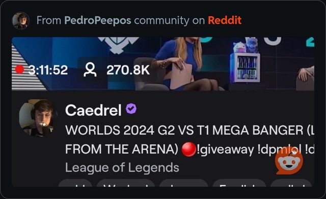 推 tung3d37 : T1+G2所以一堆人去Caedrel台看笑話(?吧 10/12 15:40
