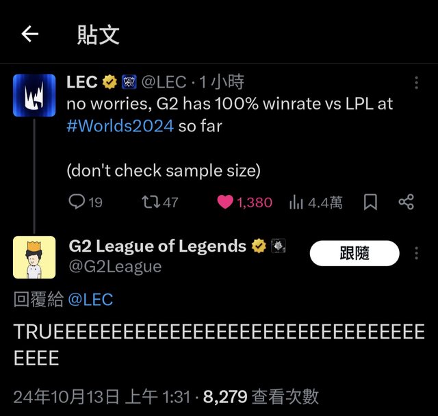 推 wugigi : G2到現在也就贏個WBG一場而已 打blg怎麼看的到希望 10/13 05:48
