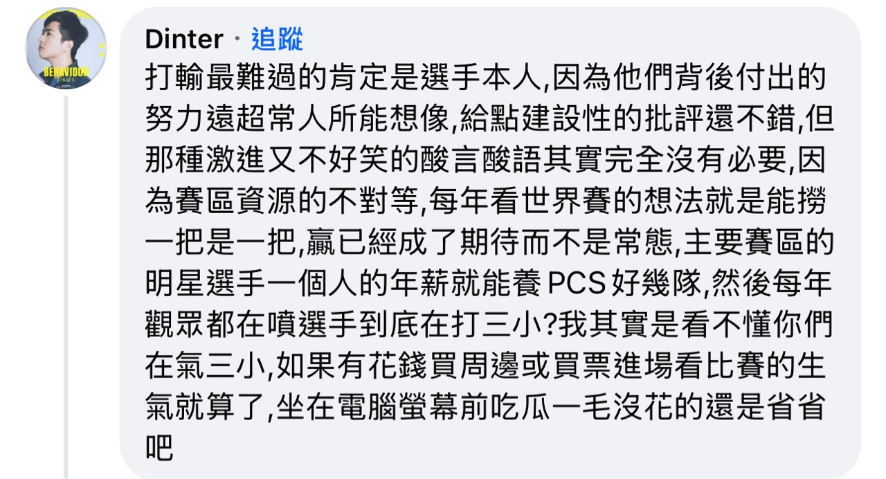 推 abd86731 : 他竟然敢說選手不努力 這在我們這裡就被開燒了 10/25 14:51