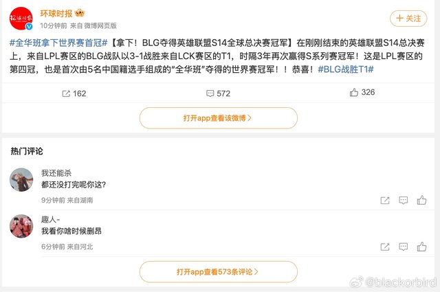 標題[閒聊] 中國環球時報誤報:恭喜BLG奪冠