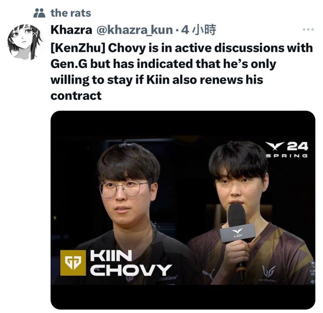 推 ken1825 : 基本上GG無法同時簽下chovy和kiin,不然早續約了 11/13 18:10