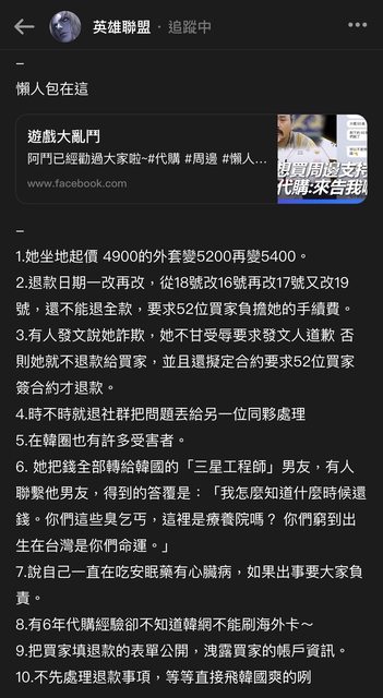 推 mrlucas8891 : 我剛好跟代購群裡面其中一個受害者在同一個FB社團 11/14 11:04
