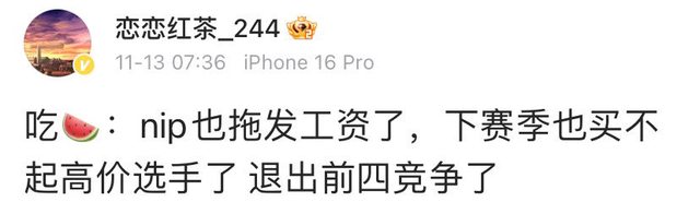 : NIP目前也拖欠選手薪資了