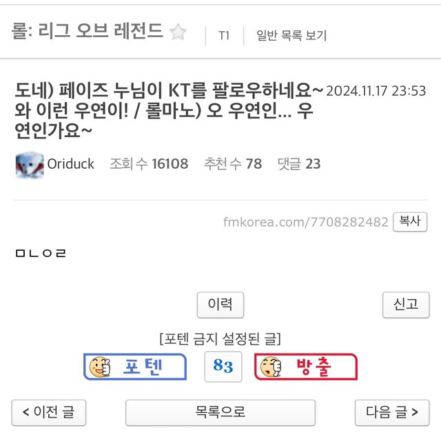 推 freesakura : 這裡就T1個版啊 LCK乳摸是討論LCK所有選手動向的地 11/18 09:32