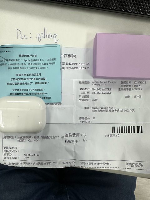 左耳:音質問題符合招回 2023.06.26 更換全新 保固+90天