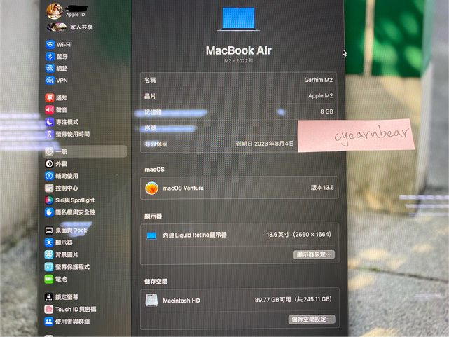標題[販售] 雙北 二手MacBook AirM2 13吋8/256午夜色
