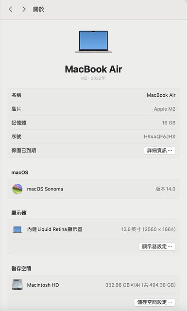 標題[販售] 新竹 MacBook Air 13” M2 16g / 512g