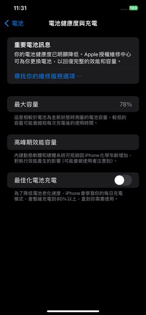 機身無明顯損傷,電池為78%( 無更換記錄)