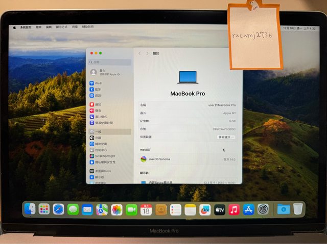 標題[販售] 雙北Macbook Pro 13吋 M1/8G/256G/2020