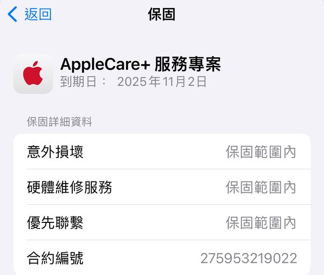 [保固] 有加買Apple care,到2025/11