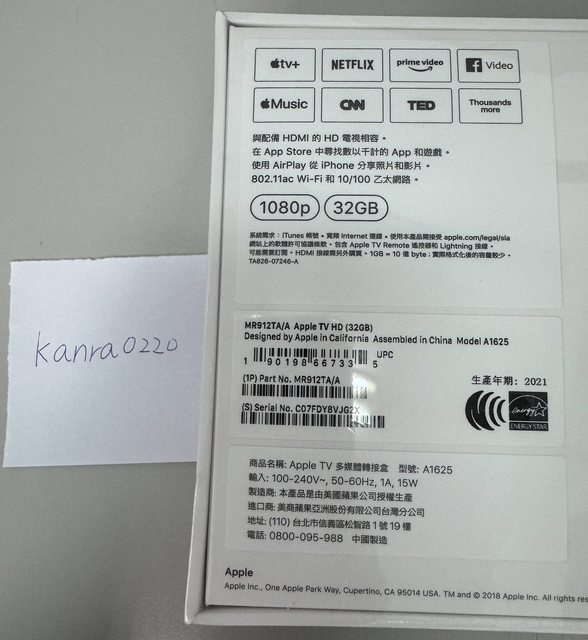 標題[販售] 台北 Apple TV HD 32GB A1625