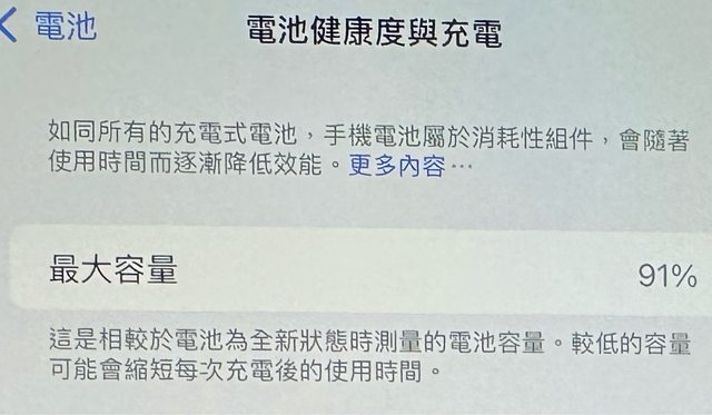 電池健康度91%,沒有換過電池,功能正常,有裝保護殼使用,機身狀況良好