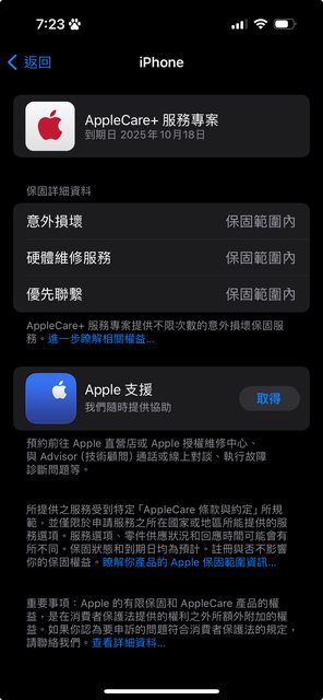 AppleCare 至2025/10/18,可以放心繼續裸機使用!