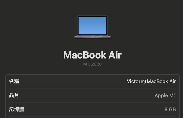 標題[販售] 雙北 Macbook Air M1 太空灰 8G/512G