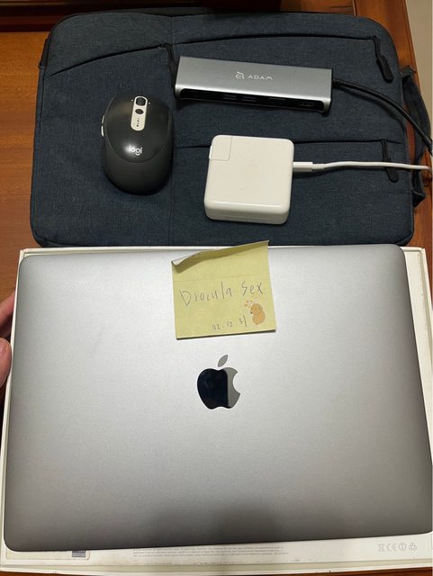 [盒裝配件] 原盒充電線頭配件皆在,另附亞果六合一轉接器+羅技無線滑鼠+牛仔電腦包