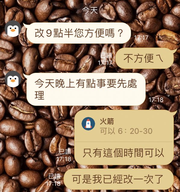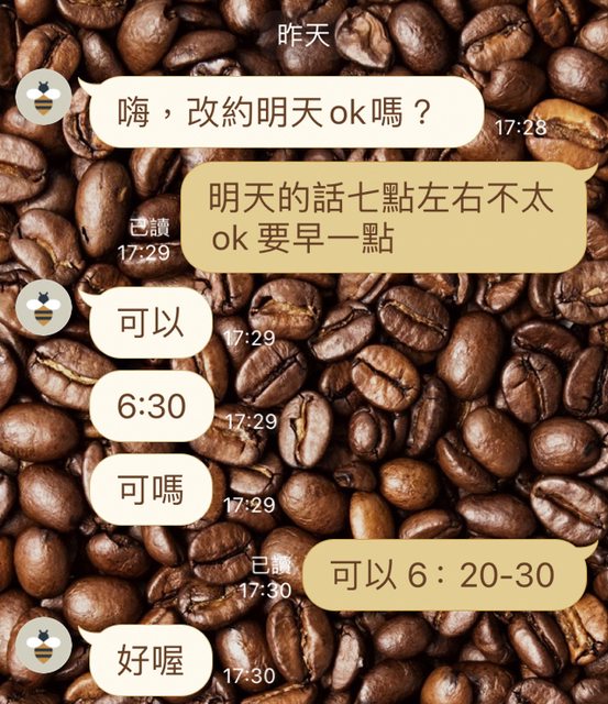 1/8 下午5:28傳訊臨時要求更改面交時間1/9 下午6:30→我同意
