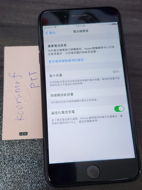 黑色電池健康度66%、螢幕電池位置有黑線,原先使用掀蓋保護殼外觀保持較佳
