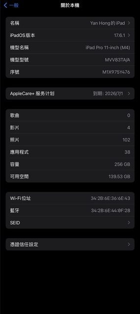 標題[販售] 桃園ipad pro m4 256g