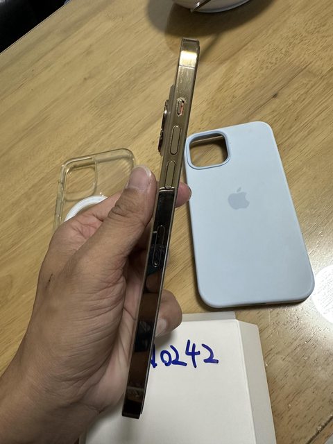 [型號]iPhone12 promax [規格]256G 金 [保固]過保 [盒裝配件]無盒/送原廠水藍色masafe矽膠手機殼跟副廠magsafe透明殼 以上贈送都是二手 品 [售價]10000 [交易方式/地點]台南市安南區面交 [連絡方式]站內信加line [商品照/補充說明] 裸機使用一陣子不小心摔破背板後就開始裝保護殼了,除了背板裂之外功能都正常可以面交 試機,目前更新為IOS18.1