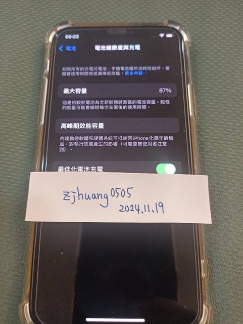 電池健康度:87%功能正常