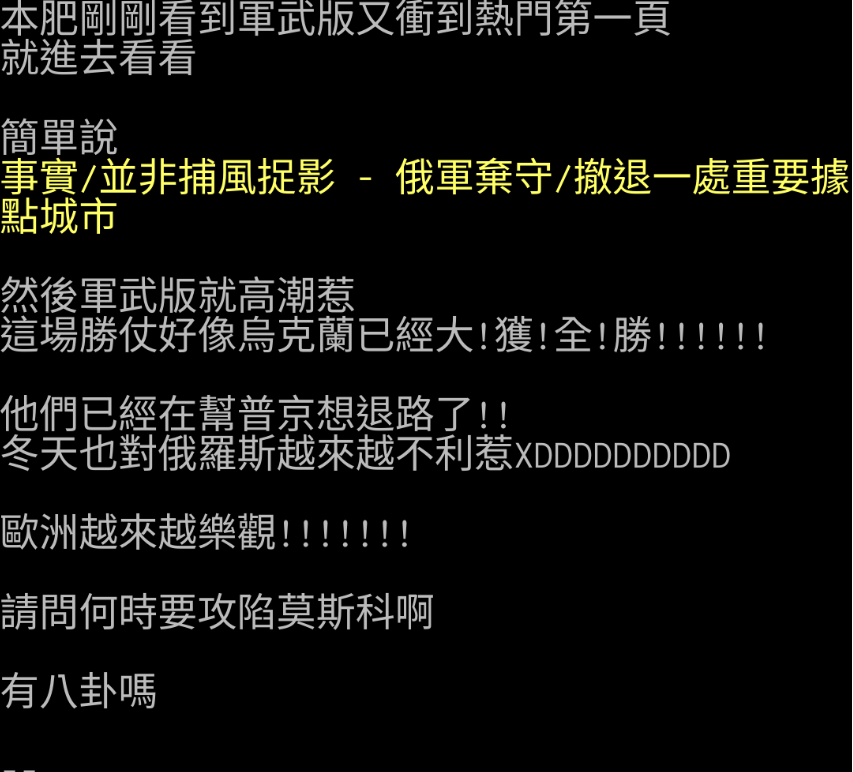 推 Yanrei : 這種時候去看一些親俄粉專就很有娛樂性 06/24 23:58