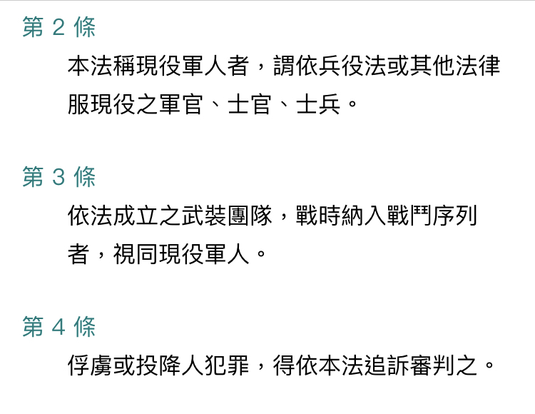 → afv : 俘虜的部份是軍事審判法第四條 07/05 21:15