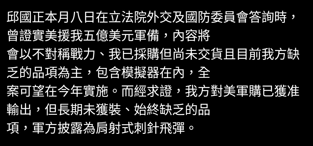 → ejsizmmy : 交付款項的軍購項目(時間尺度是年,並且三年五年 07/29 15:46