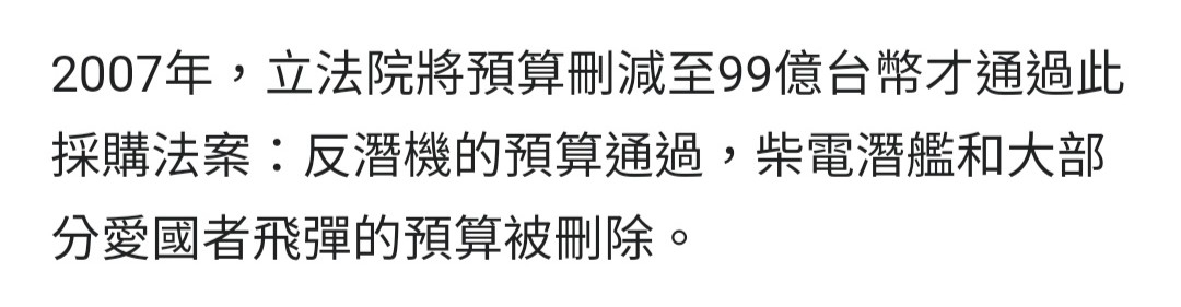 → jess730612 : 簡單驗證第一筆潛艦預算什麼時候提到大院 07/31 16:27