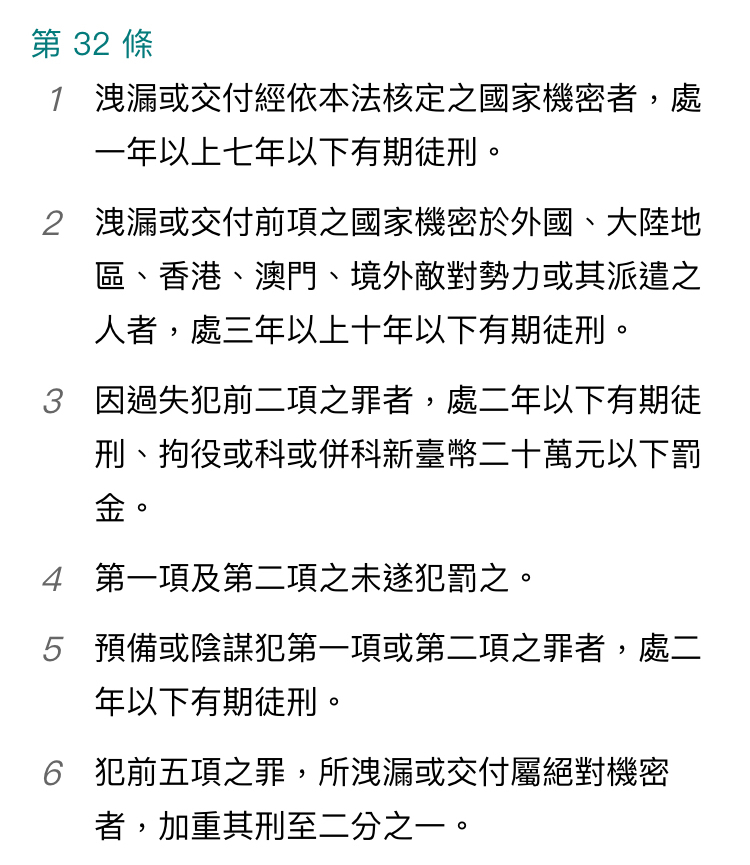 推 afv : 查了一下國家機密保護法與陸海空軍刑法,這類洩密 08/08 13:14