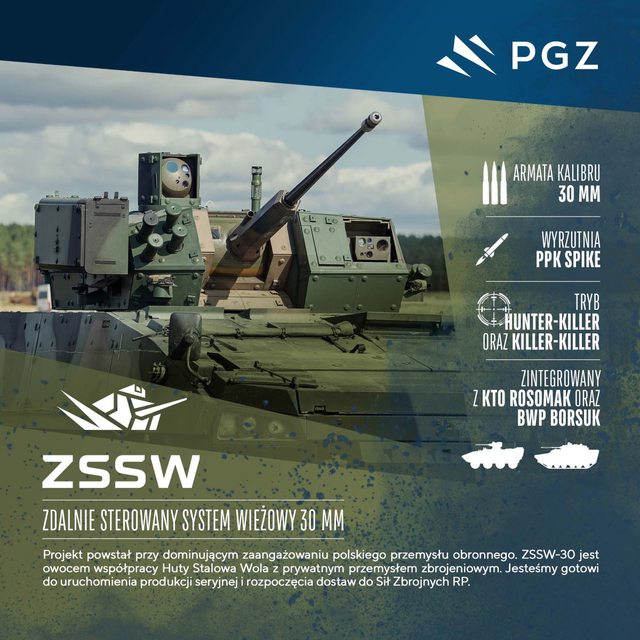 並搭配波蘭自行研製的ZSSW-30遙控砲塔,