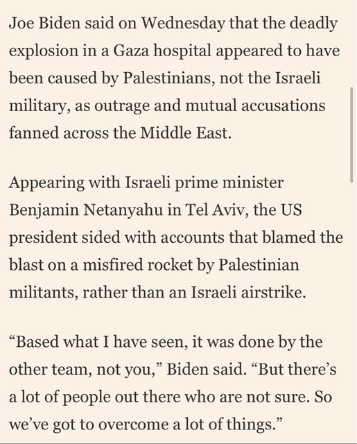 推 frozenmoon : Biden: Appears 'other team'responsible for Gaza10/18 17:34