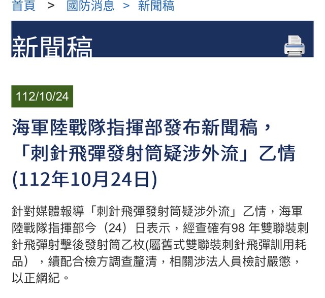 → jobli : 除了防毒面具還有刺針飛彈發射筒,檢方清查批號追查 10/24 13:32