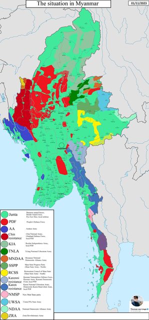 網路上流傳2023年11月的緬甸勢力分布圖是這個樣子