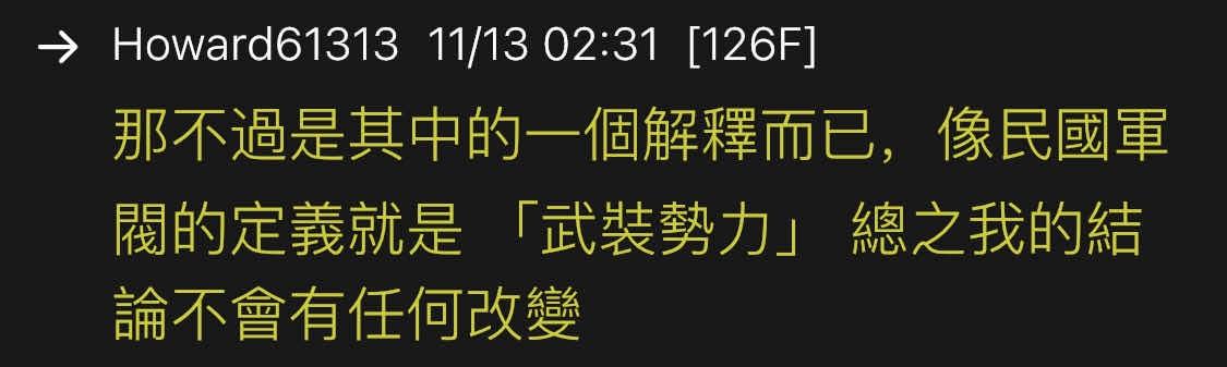 → Howard61313 : 但那不表示它不符合軍閥定義 11/13 02:09
