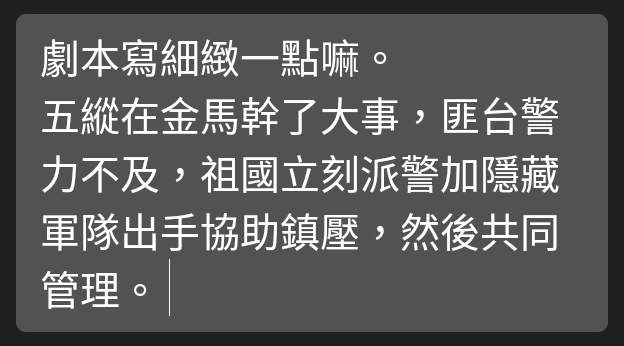 toulio81 : 不是不會發生,但這是對台灣來說相對理想的劇本 11/15 13:58