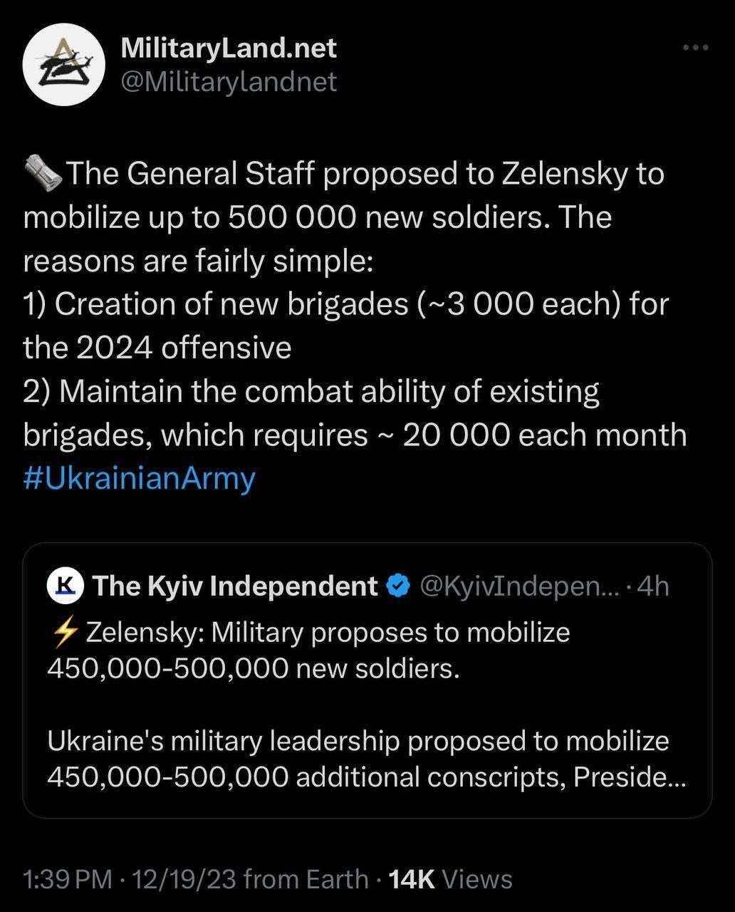 → peterlee97 : 講老鵝動員時講老鵝會 相對的烏克蘭也會 而且戰場是 12/20 12:15
