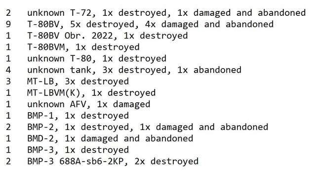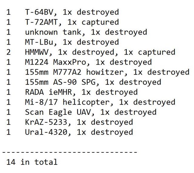 目視確認損失軍事裝備統計 2024.07.12 ~ 07.14