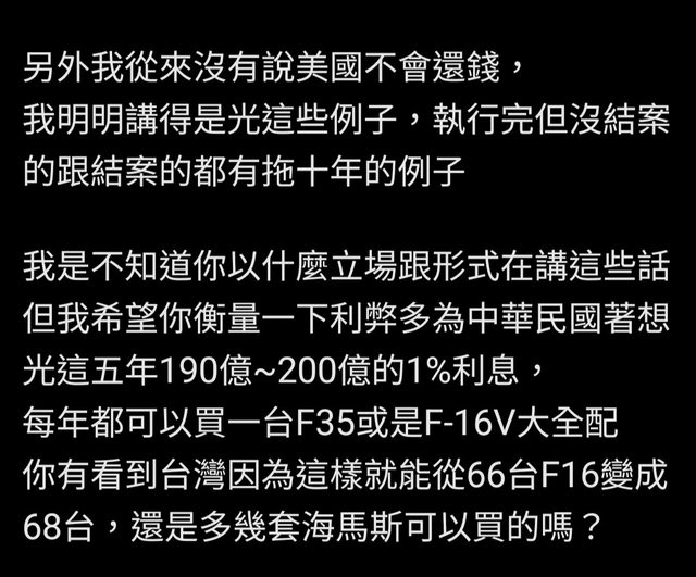 → ja23072008 : 看不懂,依然能跳針有200億美元拖延,而且沒有利息07/20 21:16