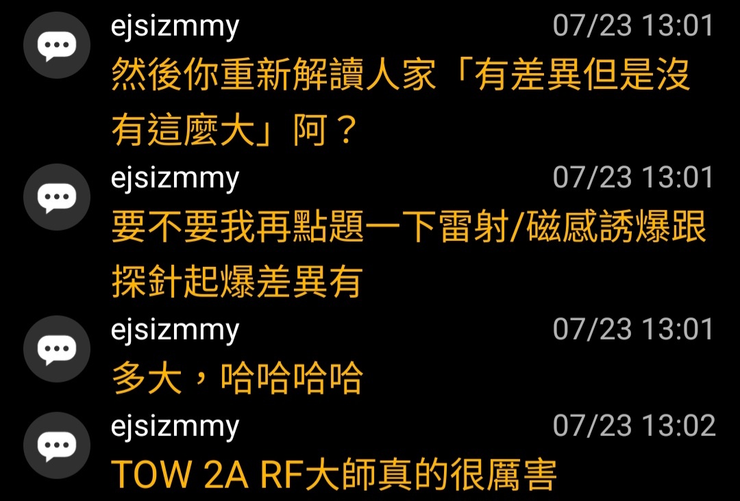→ ejsizmmy : 要不要我再點題一下雷射/磁感誘爆跟探針起爆差異有 07/23 13:01