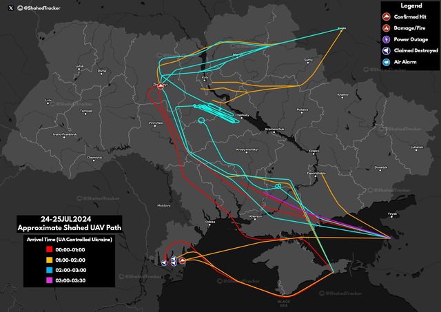 【俄羅斯 Shahed 無人機攻擊路線】