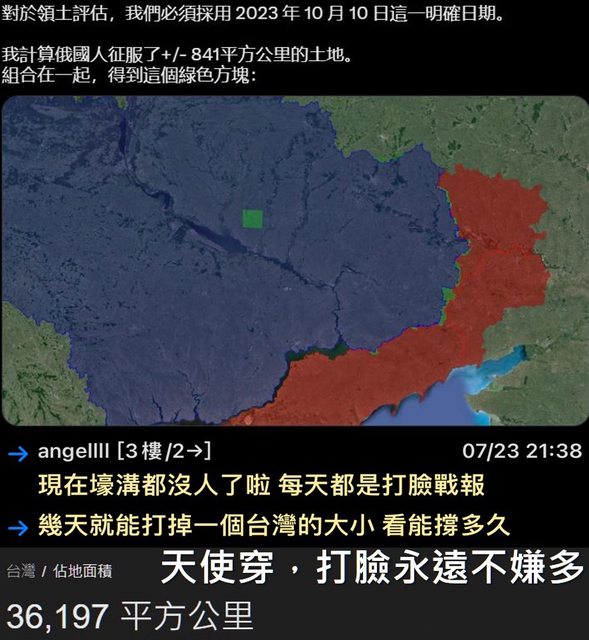 推 utn875 : 按俄軍進展速度,烏克蘭還能撐250年,也一起換算給 08/07 20:41