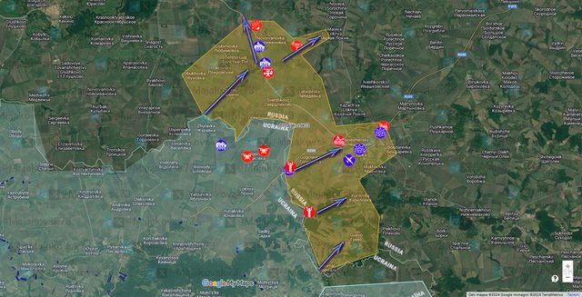 俄羅斯消息發布的地圖顯示,烏軍已深入
