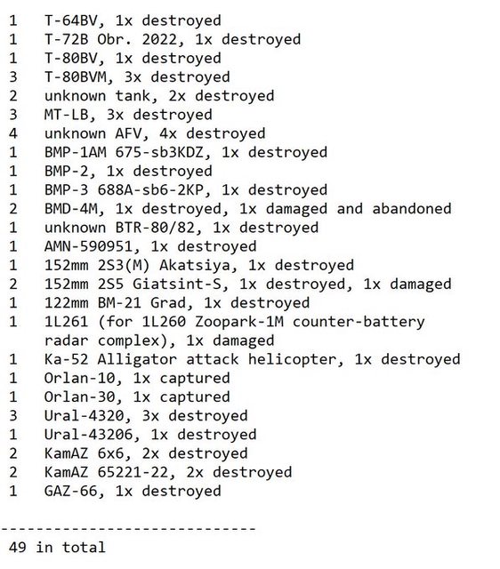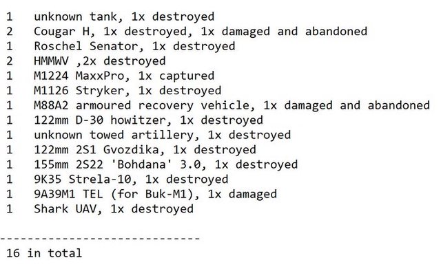 目視確認損失軍事裝備統計 2024.08.05 ~ 08.08