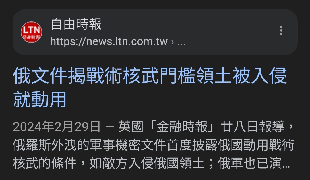 → reich3 : 俄羅斯的核彈在哪裡?紅線在哪裡?全世界都想知道! 08/11 13:55